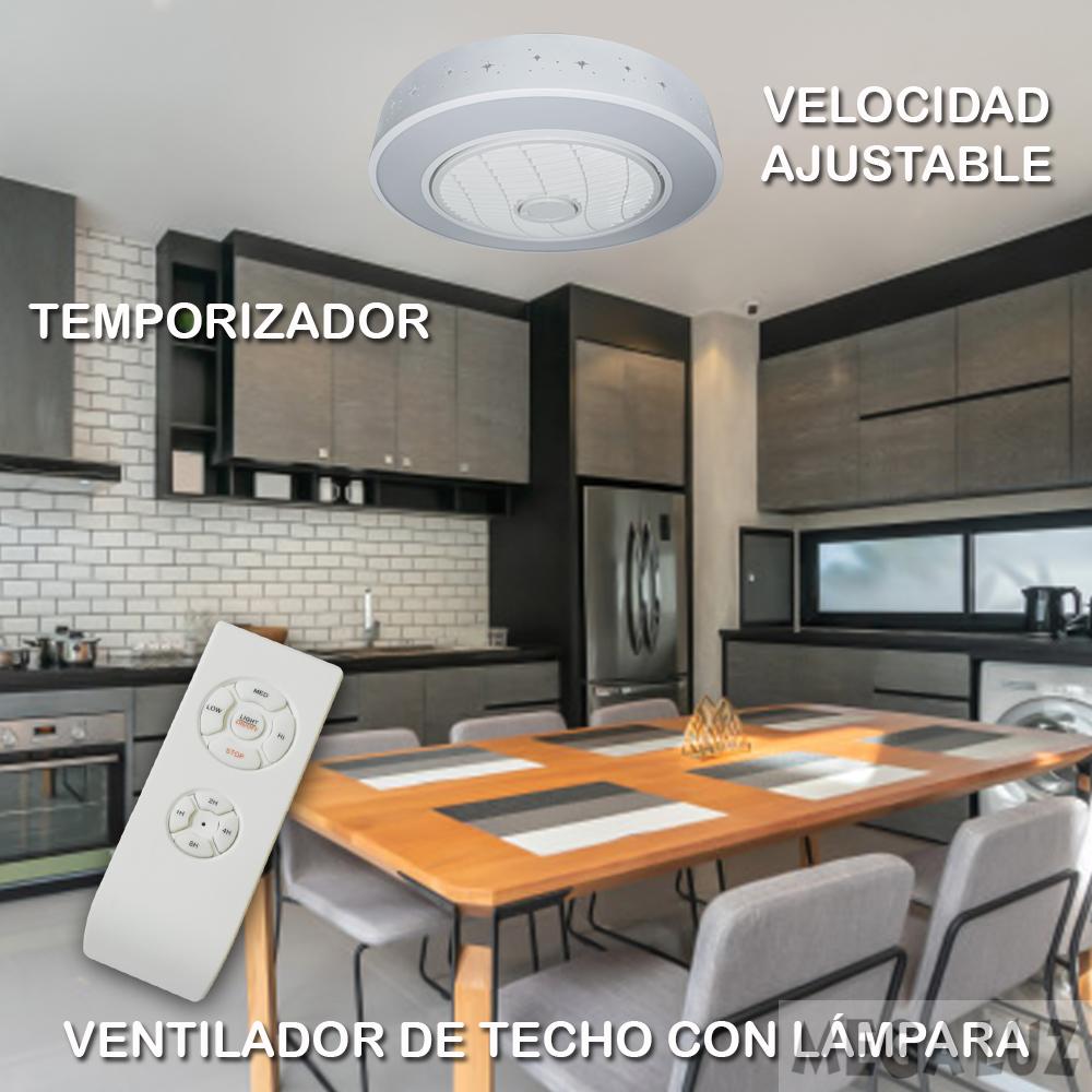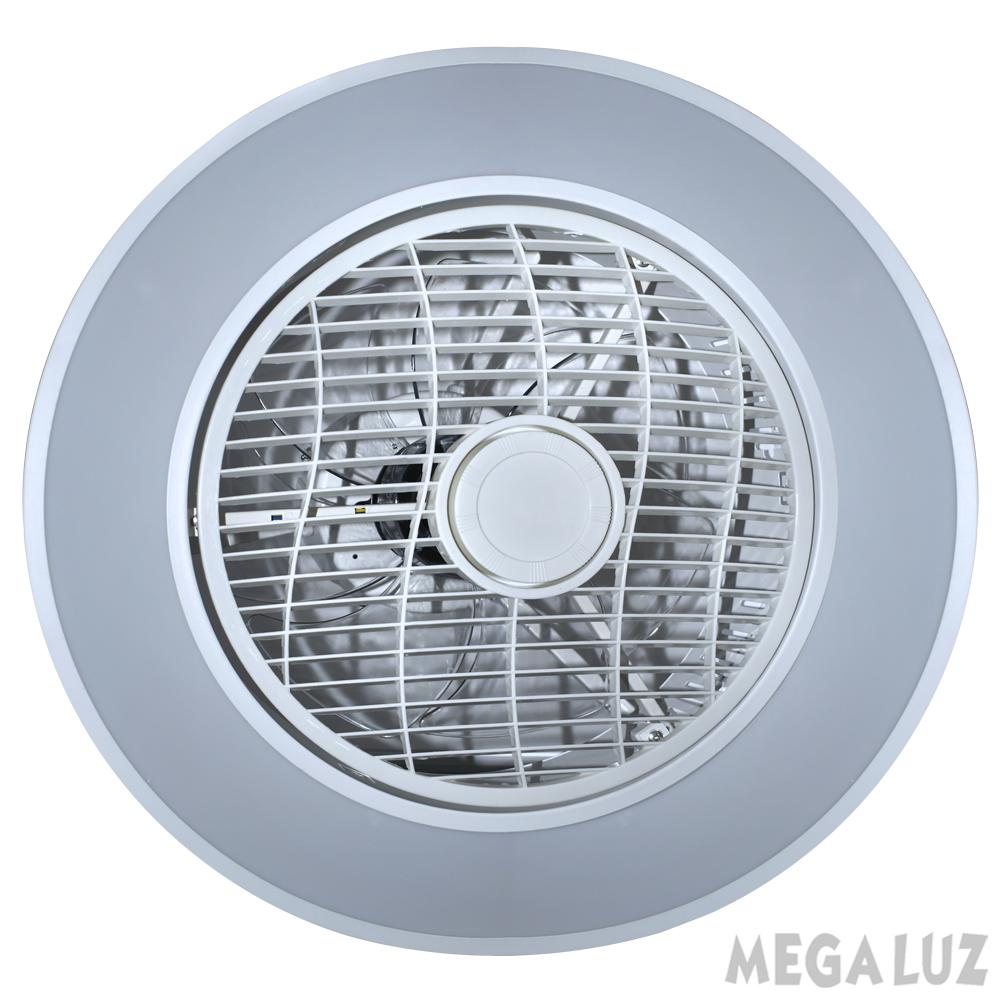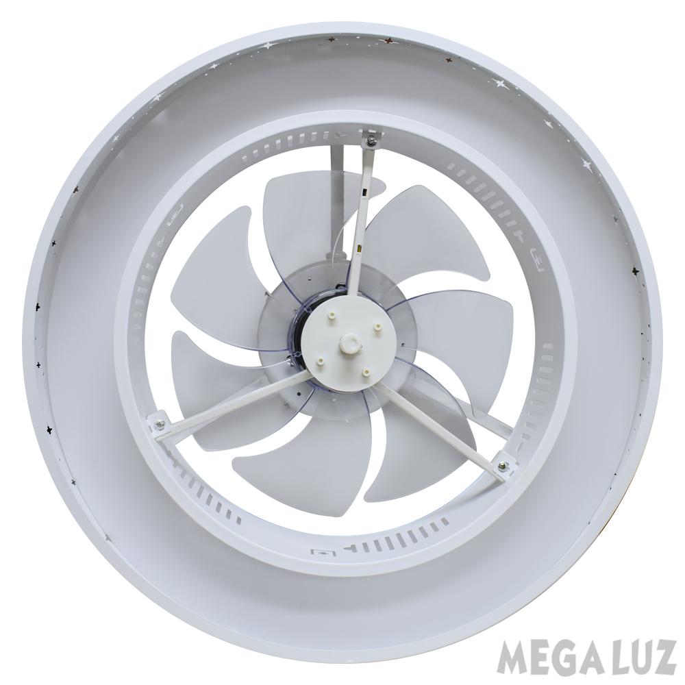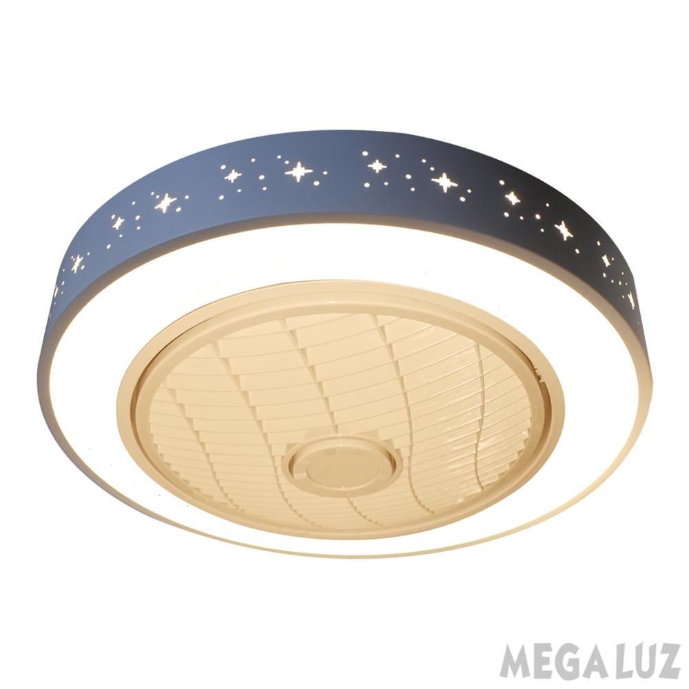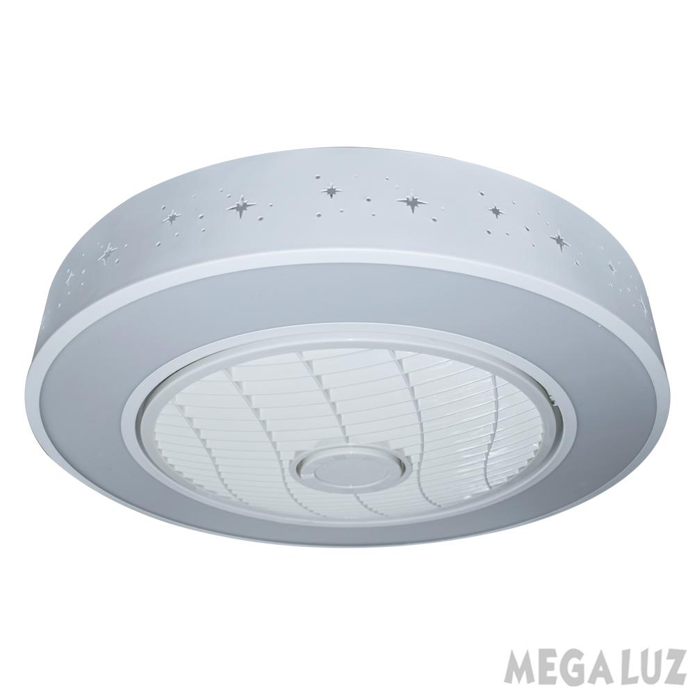 Mega Luz WF60005-520, Ventilador de Techo, Con Lámpara LED y Control Remoto, Luz Cálida y Fría, Aspas Internas de Acrílico, Diámetro 13” (Carcaza Metálica, Diseño Circular)